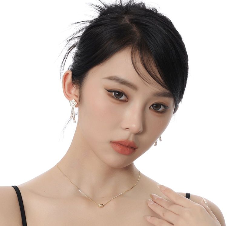 細やかなチェーンが重なり合うデザインで、軽やかで上品な雰囲気を作り出す