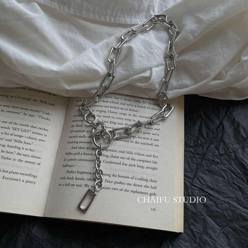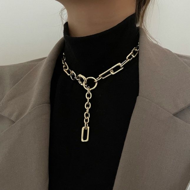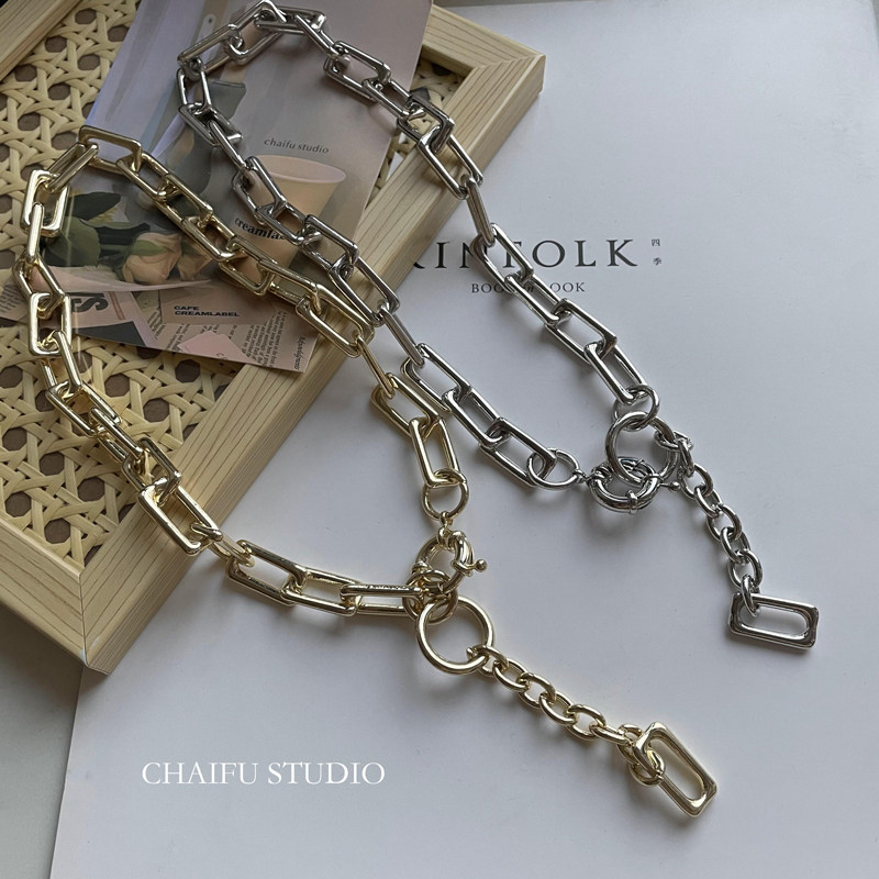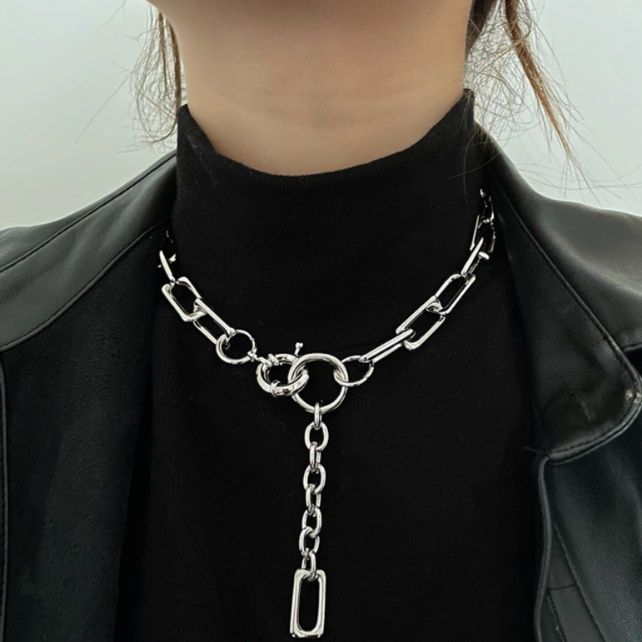 太めのチェーンと丸環の組み合わせが印象的なレディースネックレスです。