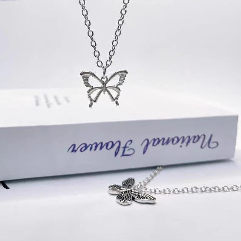 繊細な羽根の模様が美しい蝶々モチーフのレディースネックレスです。